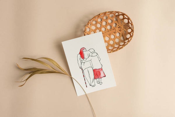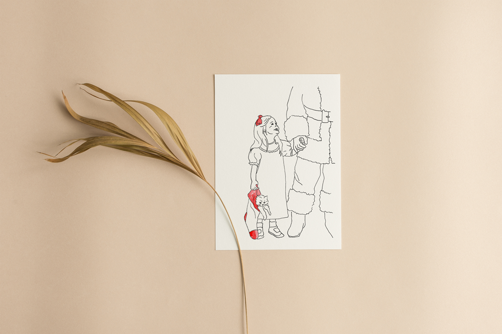 Vier knusse kerstkaarten. Gedrukt op een gevouwen kaart en geleverd met een kraftkleurige envelop.