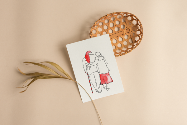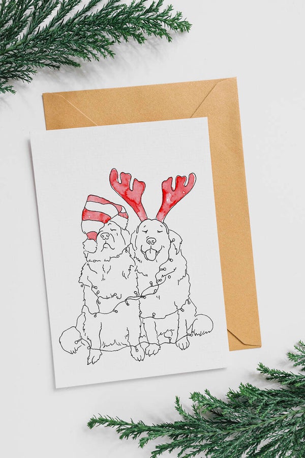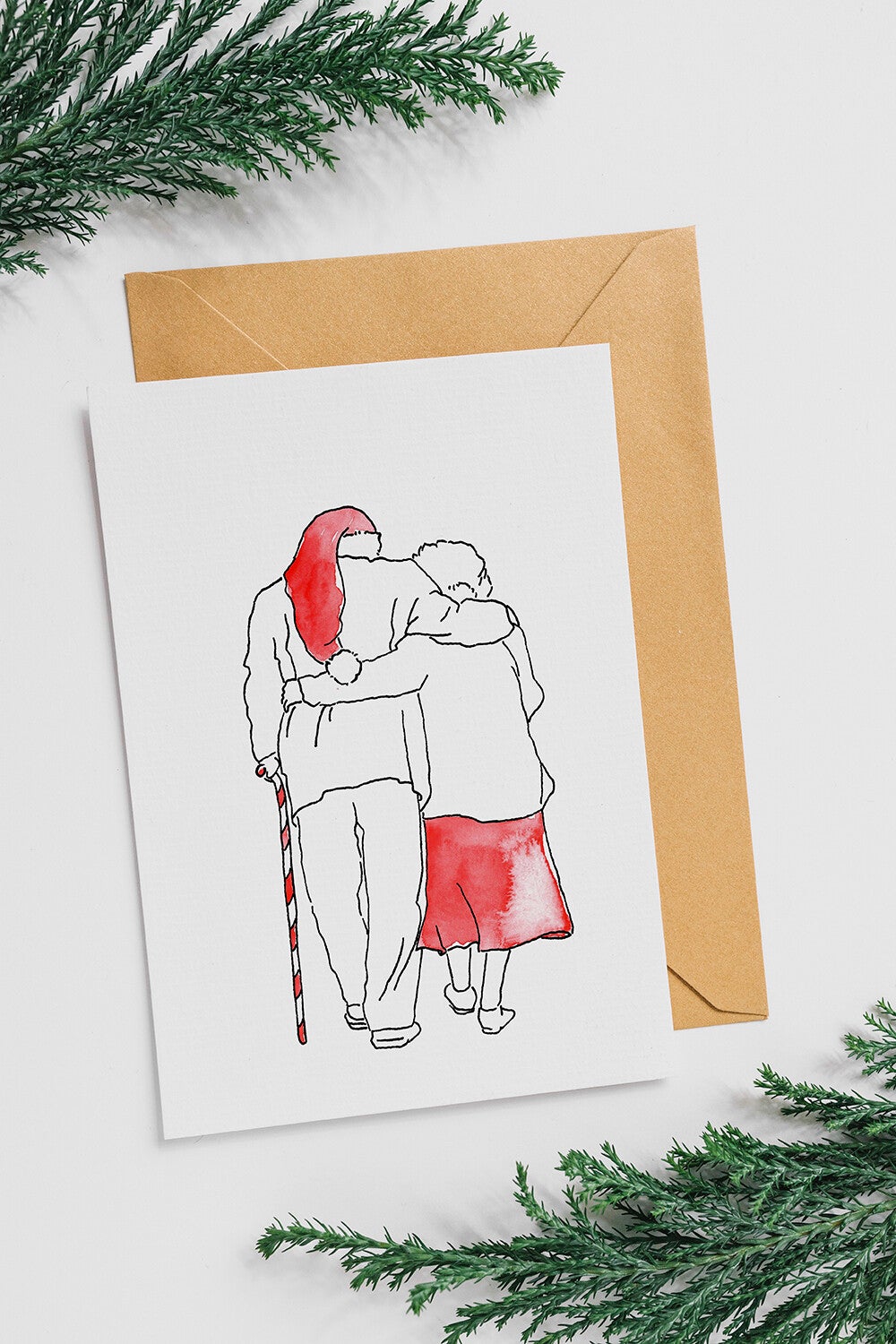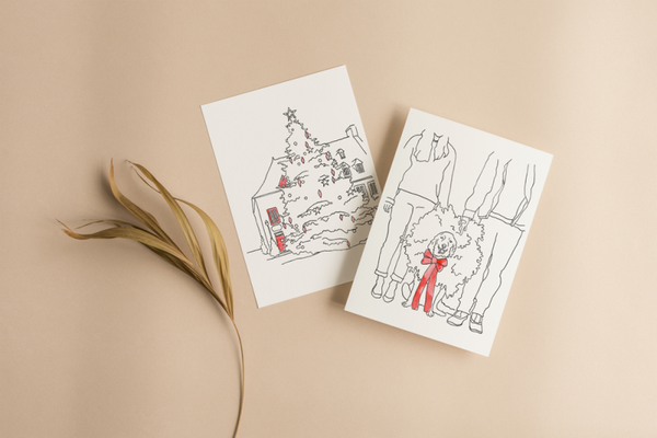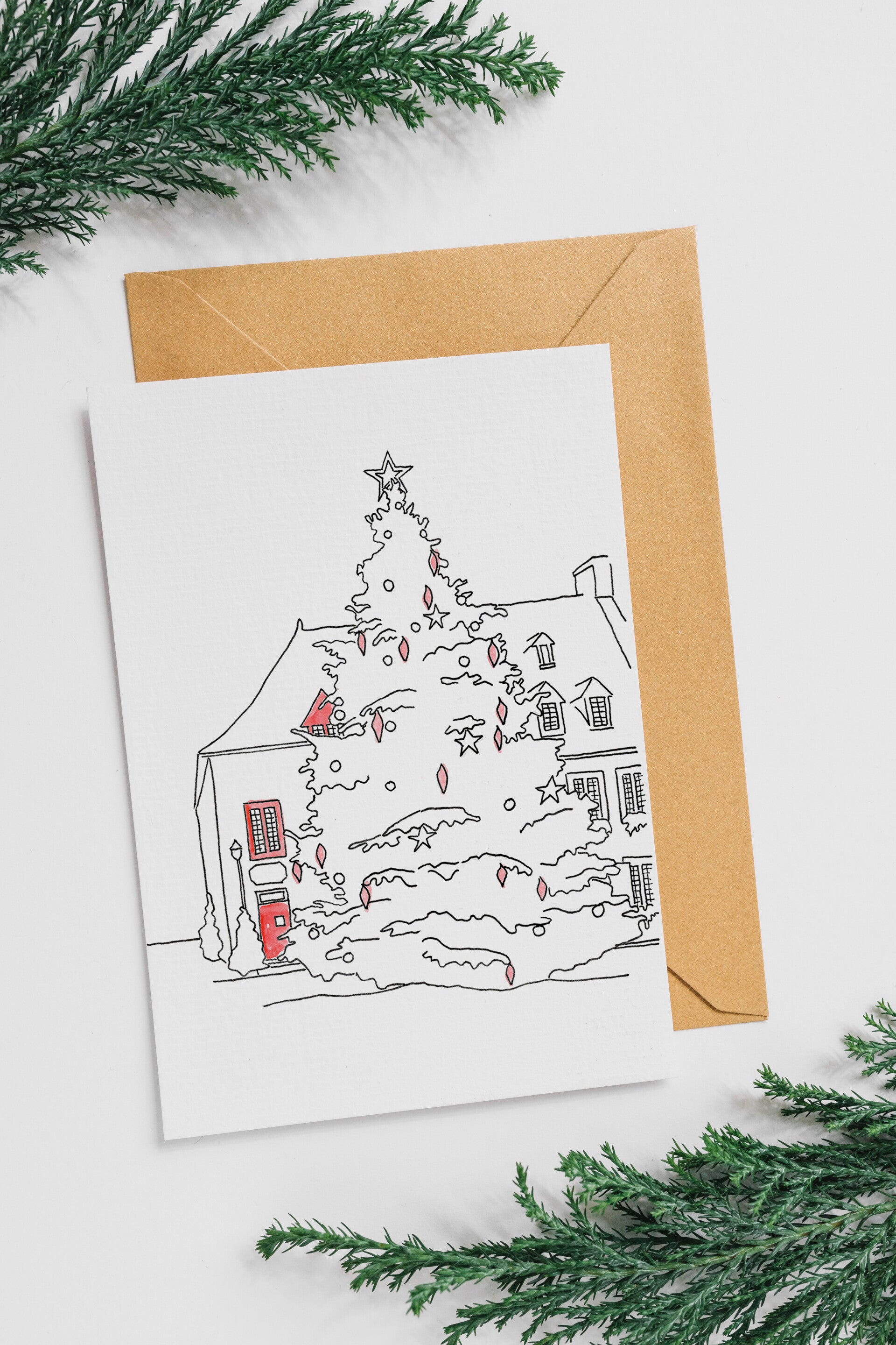 Acht verschillende kerstkaarten. Gedrukt op een gevouwen kaart en geleverd met een kraftkleurige envelop.